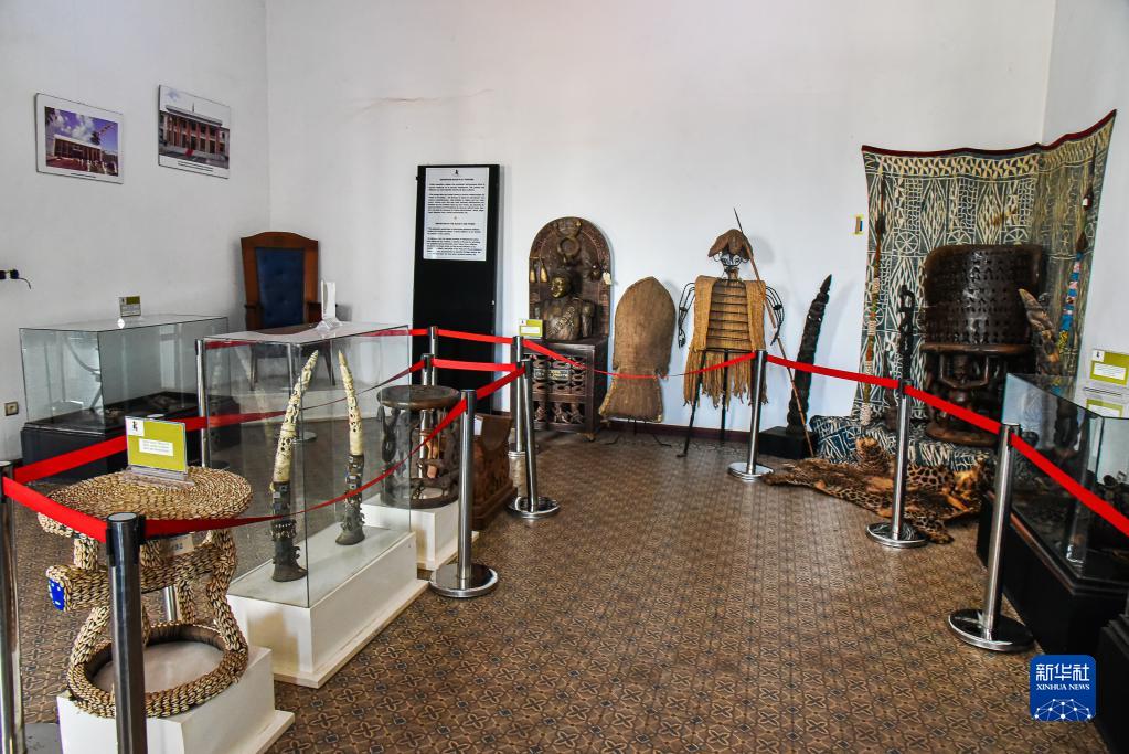 这是5月15日在喀麦隆首都雅温得国家博物馆内拍摄的传统部落王国展品。