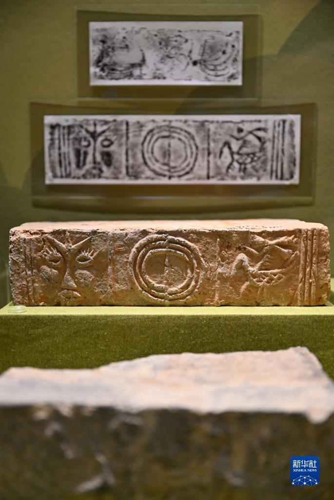 这是东汉时期的仙人神鸟纹画像砖(5月18日摄)。