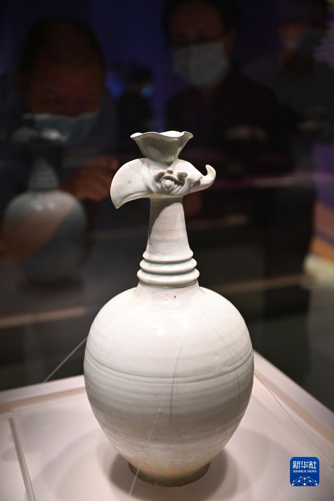 这是宋代青白釉花口凤首瓷壶(5月18日摄)。