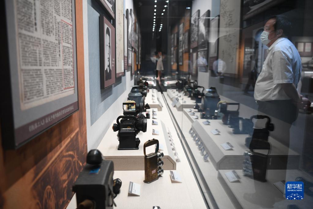5月18日,市民在广州铁路博物馆内观看展示的各种号志灯。