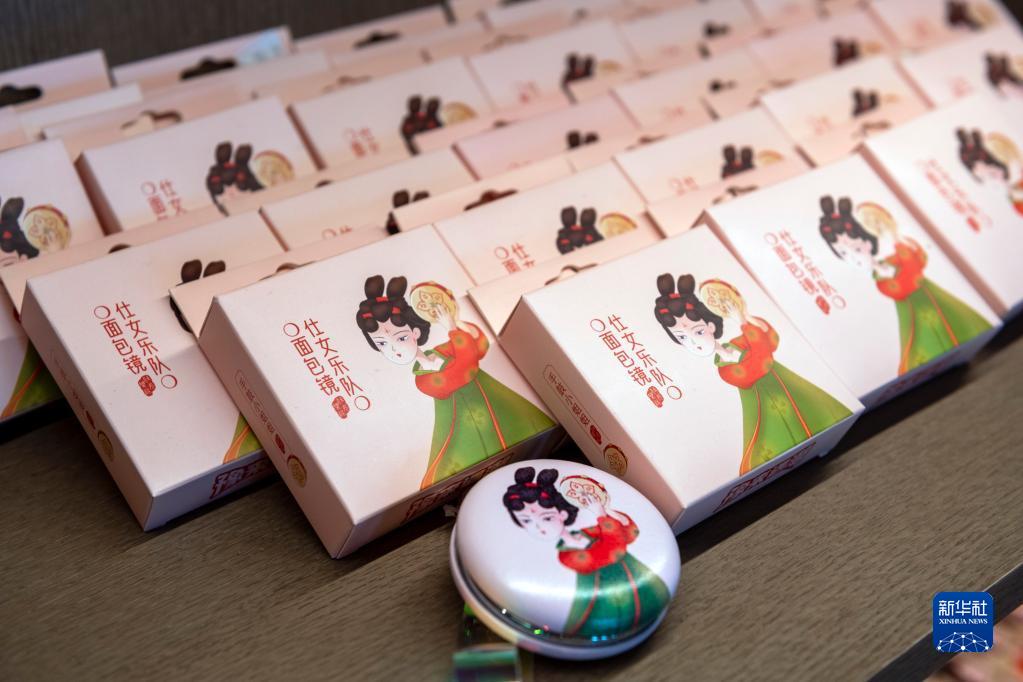 这是在河南博物院文创商店拍摄的“仕女乐队”面包镜(5月17日摄)。