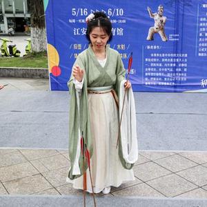 5月17日,在四川大学江安校区,学生体验传统体育运动木射。