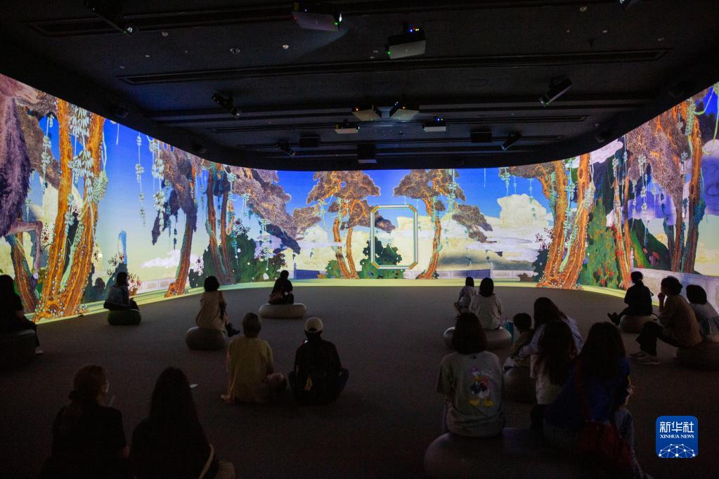 5月18日,游客在韩国首尔国立中央博物馆观看数字沉浸式影像。