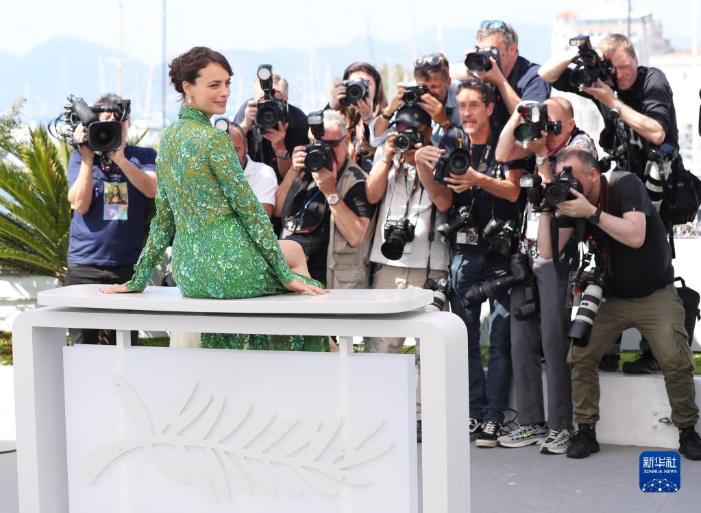 5月18日,在法国戛纳举行的第75届戛纳电影节上,法国影片《丧尸不要停》的演员贝热尼丝·贝乔出席拍照式。