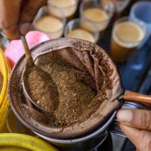 5月18日,在马来西亚雪兰莪州的必打灵查亚,穆赫德·扎布里在制作拉茶。穆赫德·扎布里在必打灵查亚经营拉茶店已超过20年,他制作的拉茶深受当地居民喜爱。