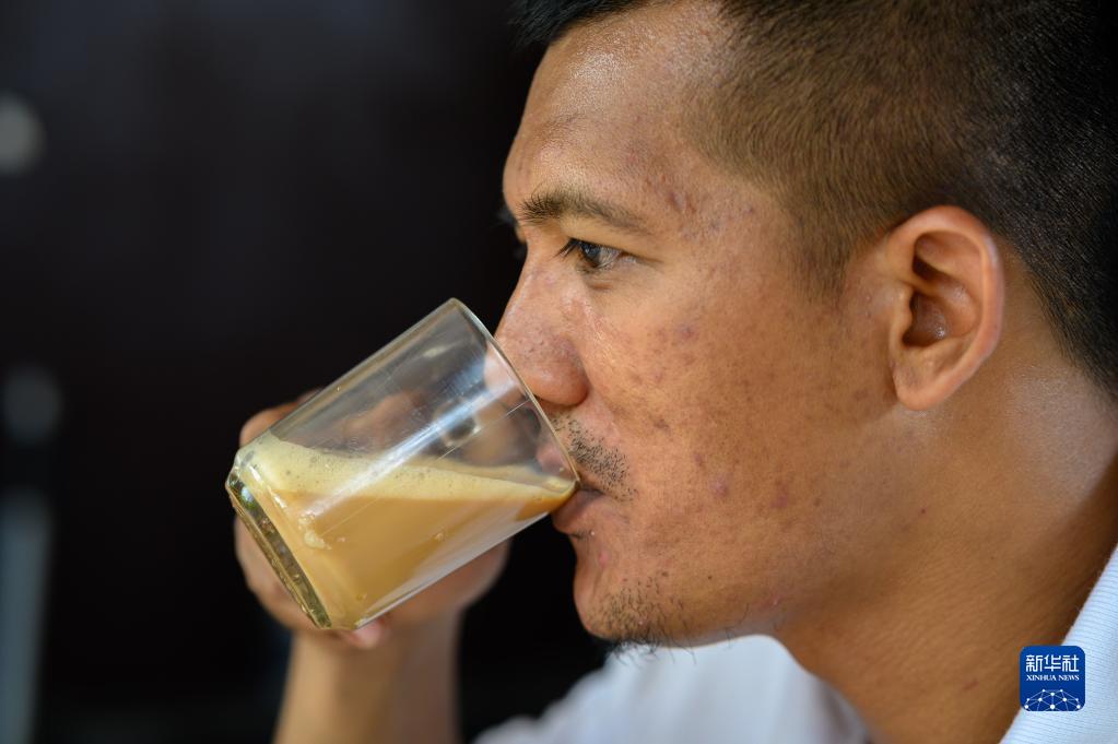 5月18日,一名男子在马来西亚雪兰莪州的必打灵查亚饮用拉茶。