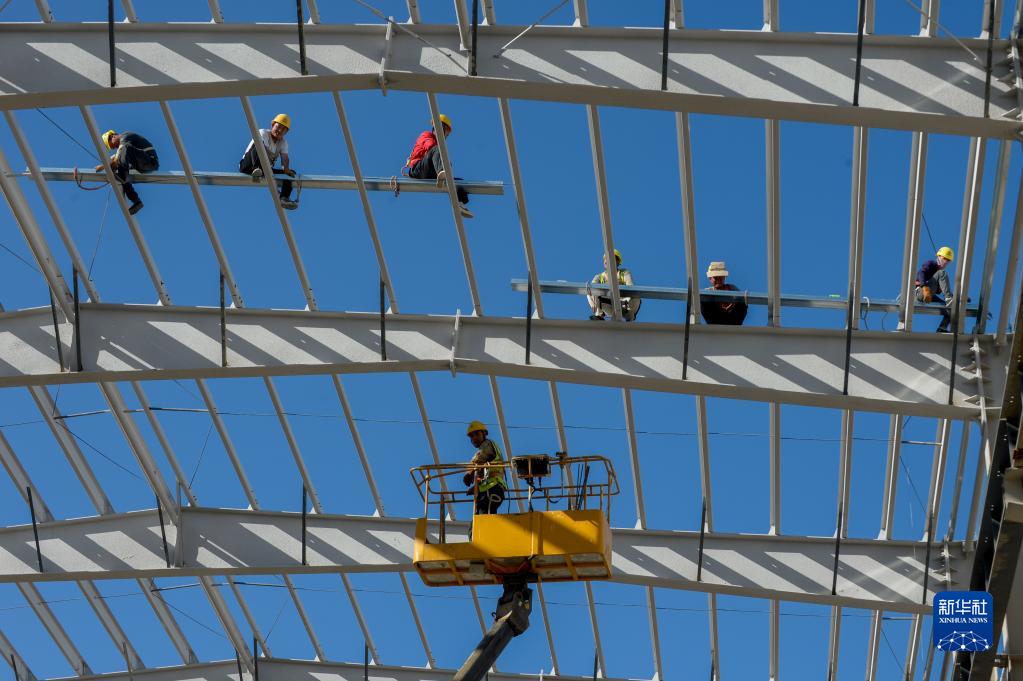 工人在新疆塔城重点开发开放试验区国际物流园项目施工(5月18日摄)。