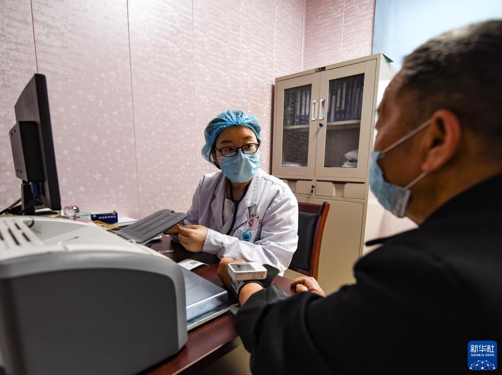 5月18日,在成都市温江区万春镇中心卫生院,家庭医生杨静(左)在问诊间坐诊。