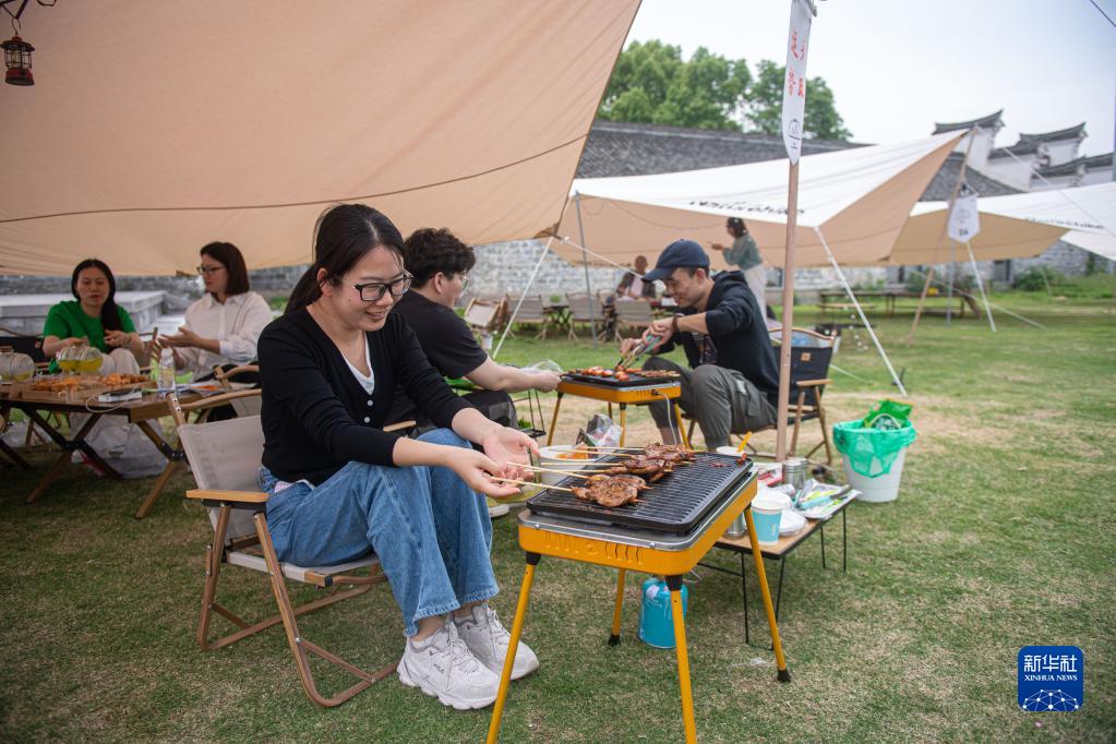 5月19日,游客在宁波市江北区慈城镇一处露营地内休闲玩耍。