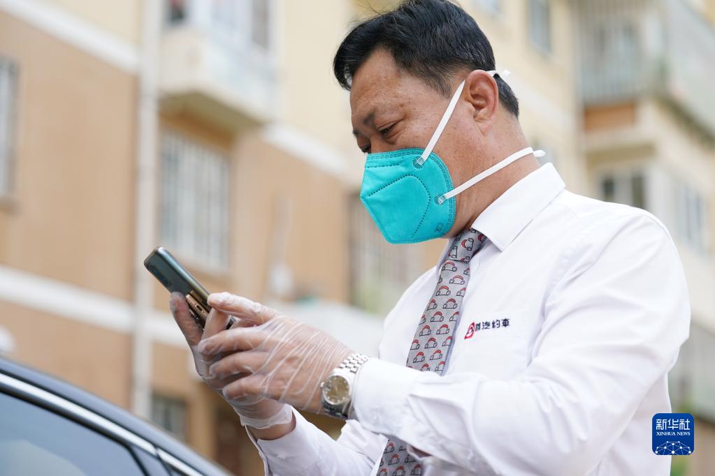 5月19日,在北京市朝阳区高碑店地区通惠家园社区,“市民就医保障应急车队”的驾驶员武兴泉抵达患者居住小区后联系患者家属。武兴泉今年53岁,这是他加入应急车队的第16次保障服务。