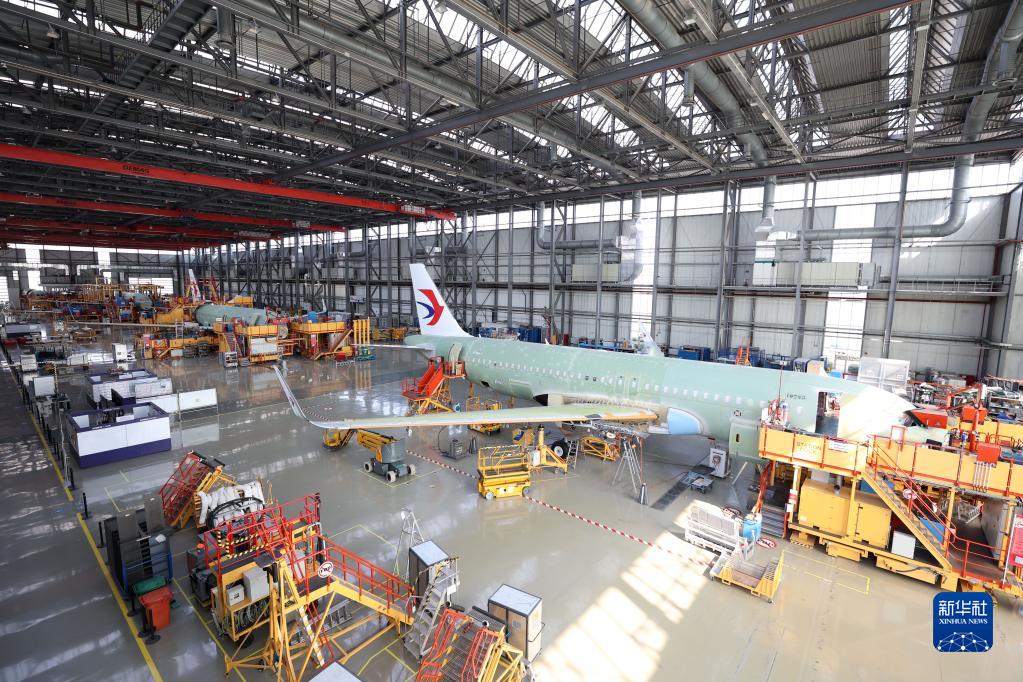 在空客天津总装线,工作人员在进行空客A320系列飞机总装(2月24日摄)。