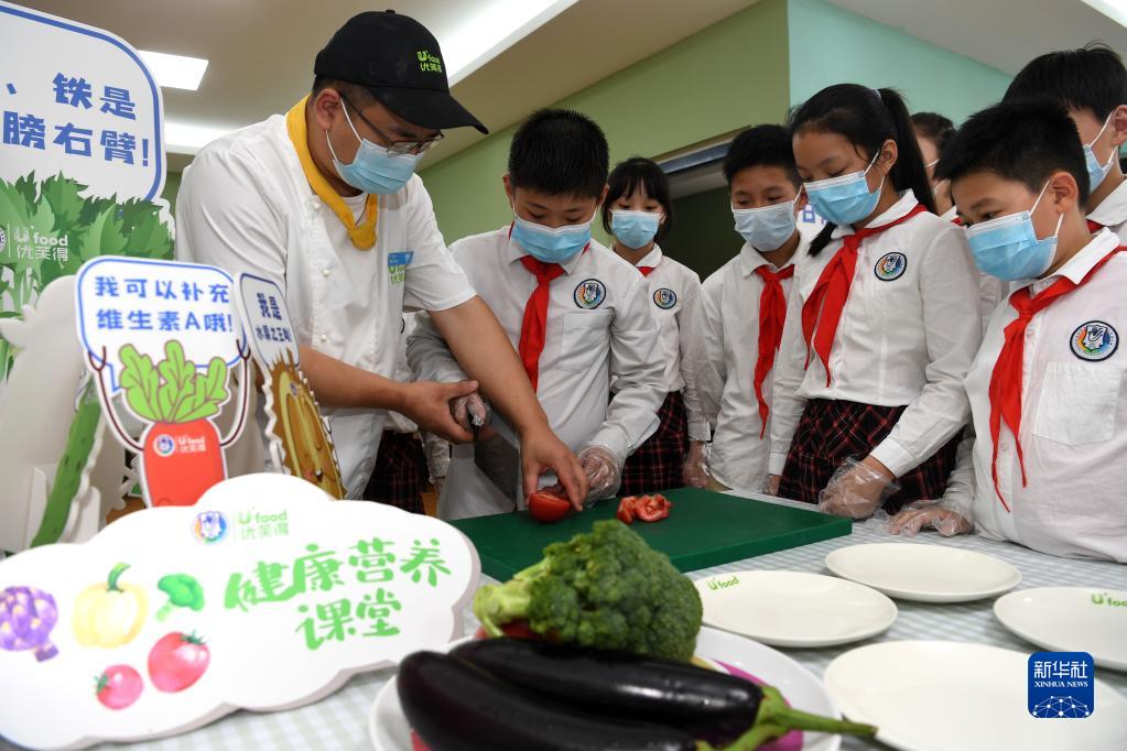 当日,安徽省合肥市翡翠学校开展“我是小小营养师”主题活动,引导学生养成健康饮食、均衡营养的生活方式。5月20日为中国学生营养日。