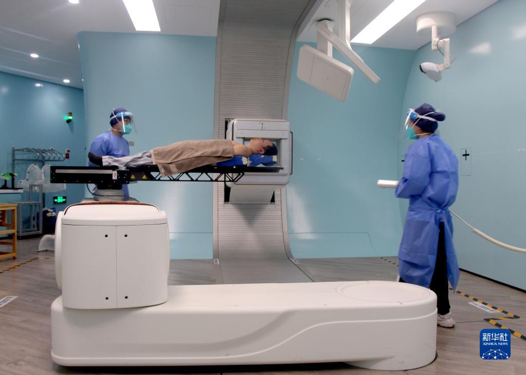 5月19日在上海交通大学附属瑞金医院肿瘤质子中心拍摄的首台国产质子治疗示范装置的临床试验。