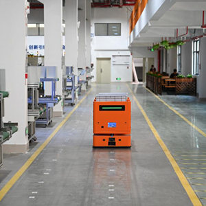 5月18日,在福建省南安市九牧高端灯塔工厂,“5G自动运输车”在车间进行运输作业。