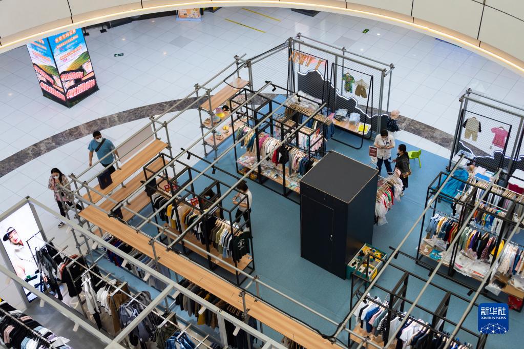 5月19日,市民在哈尔滨市香坊区一大型商场内逛街购物。