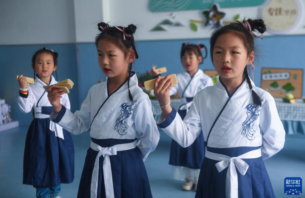 5月20日,杭州市富阳区里山镇中心幼儿园孩子在表演原创节目《说茶》。