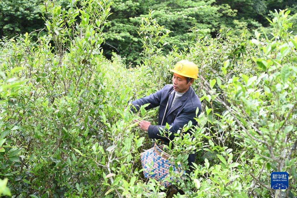 5月18日,茶农在光泽县司前乡干坑林场采摘茶青。