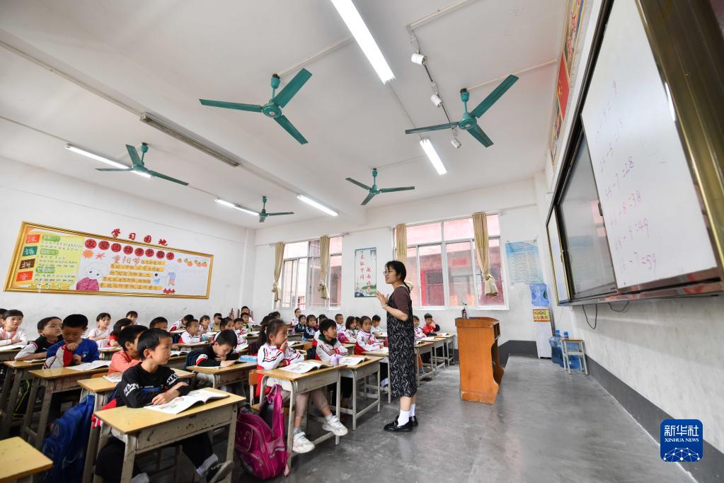 三只羊小学的孩子们在教室里上课(5月18日摄)。