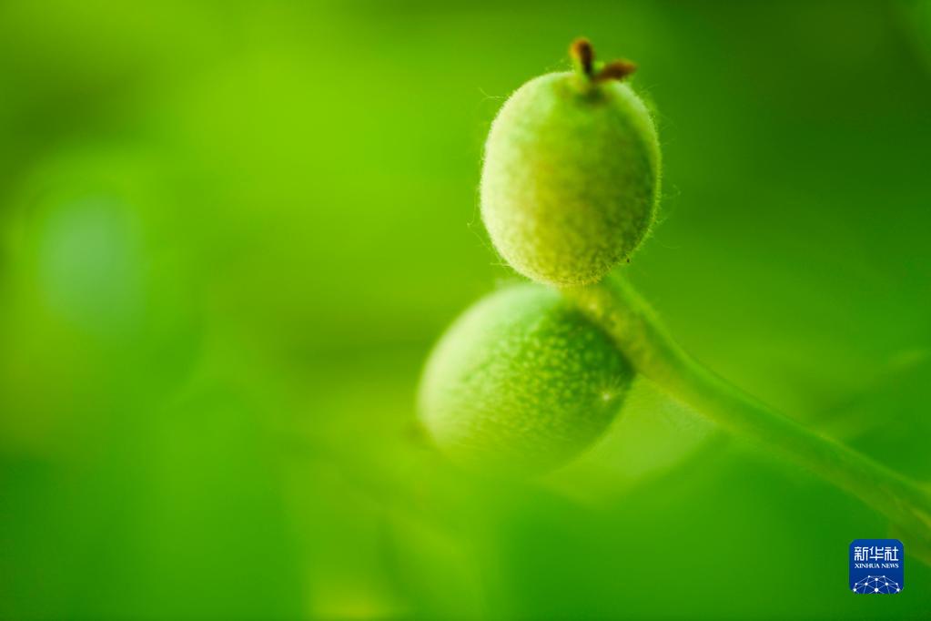 5月14日,在河北省遵化市侯家寨乡马蹄峪村,核桃树结出幼果。