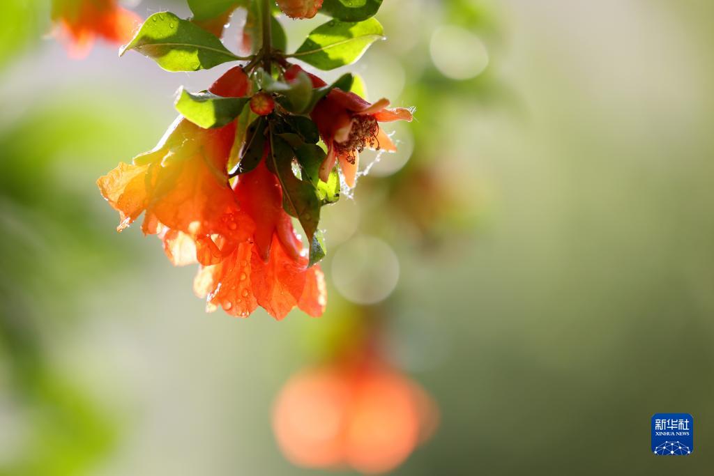 5月15日,在山东省枣庄市峄城石榴园拍摄的盛开的石榴花。五月榴花红似火。