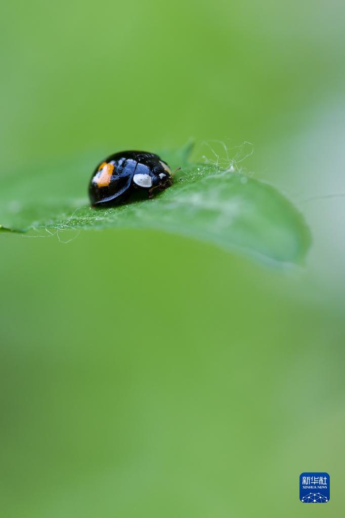 5月18日,在江苏省南京市滨江公园,一只瓢虫趴在叶子上休息。