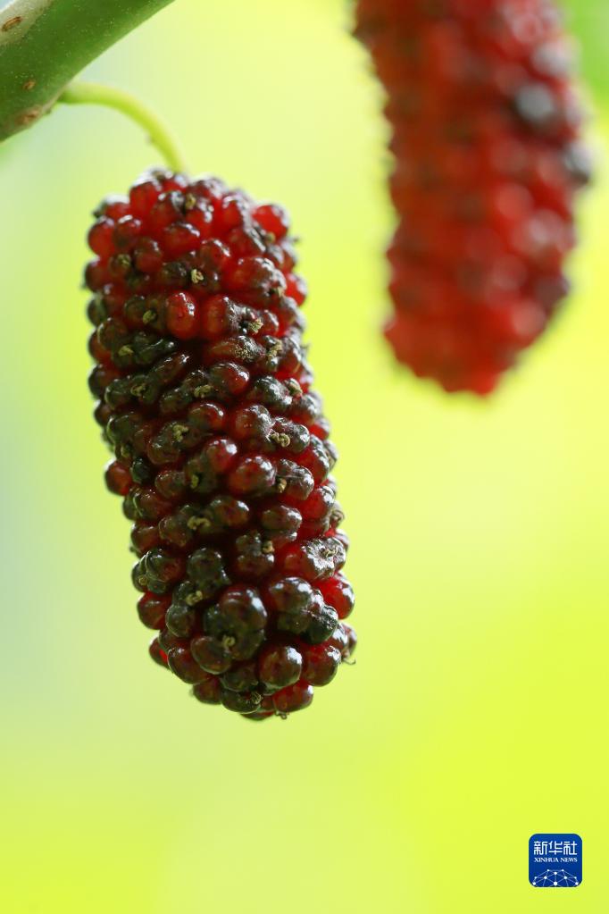 5月12日,在湖北省宜昌市秭归县九畹溪镇石柱土家族村拍摄的紫红的桑葚。