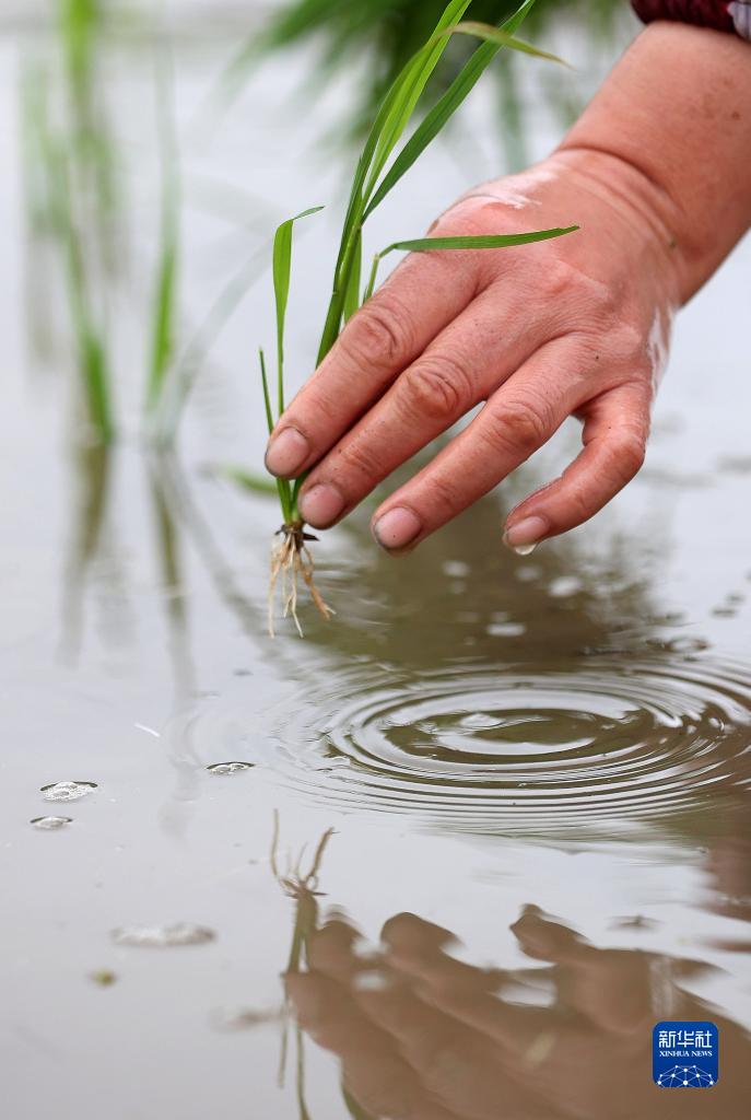 5月15日,村民在贵州省黔东南苗族侗族自治州丹寨县兴仁镇台辰村水田里插秧。