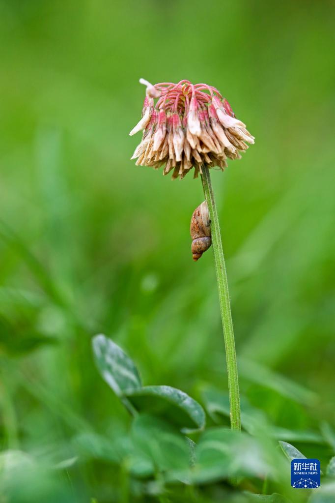 5月14日,在云南省红河哈尼族彝族自治州蒙自市滇南绿洲森林公园,车轴草渐渐枯萎。小满三候中,二候靡草死,说的就是小满时节,喜阴的一些草类开始枯死。