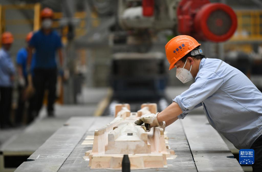 5月18日,工人在中铁宝桥集团有限公司生产车间工作。