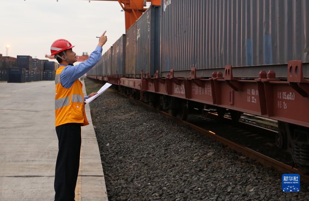 5月19日,贵州遵义阁老坝站工作人员对黔粤班列“遵义号”进行装车检查。