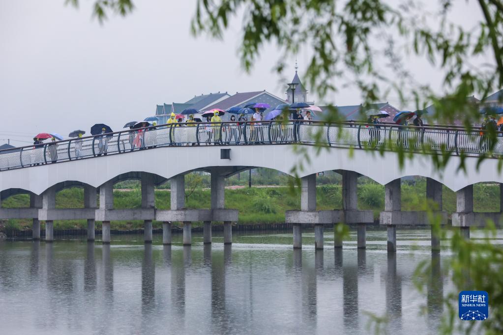 5月20日,参加活动的游客漫步在塘栖镇北塔漾绿道。