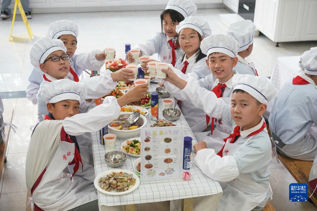 5月20日,南京市岱山实验小学学生在举行“班级宴会”。