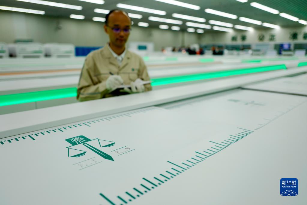 5月20日,在国网重庆市电力公司计量中心的新一代国际标准电能表自动化检定流水线生产车间内,计量专家肖冀检查设备的生产运行情况。