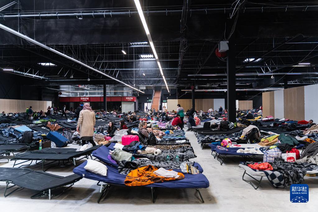 这是3月8日在波兰华沙国际会展中心拍摄的为乌克兰人搭建的简易床铺。新华社发(华沙PTAK国际会展中心供图)