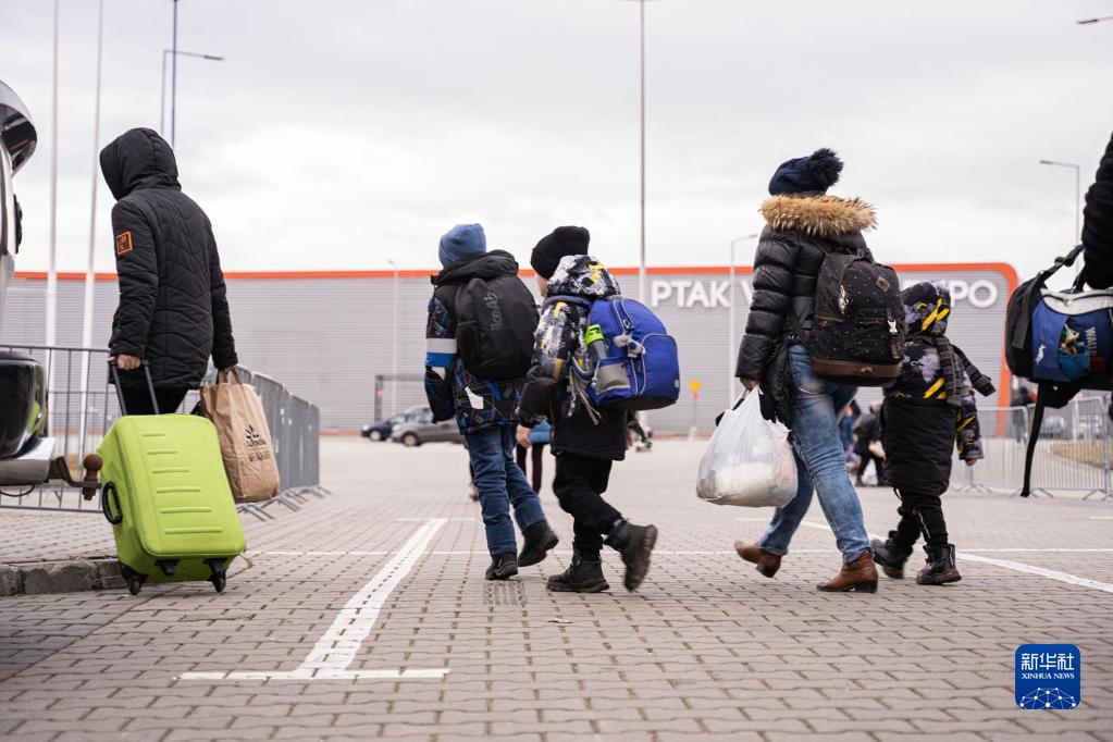 3月8日,一些乌克兰人到达波兰华沙国际会展中心的安置点。新华社发(华沙PTAK国际会展中心供图)
