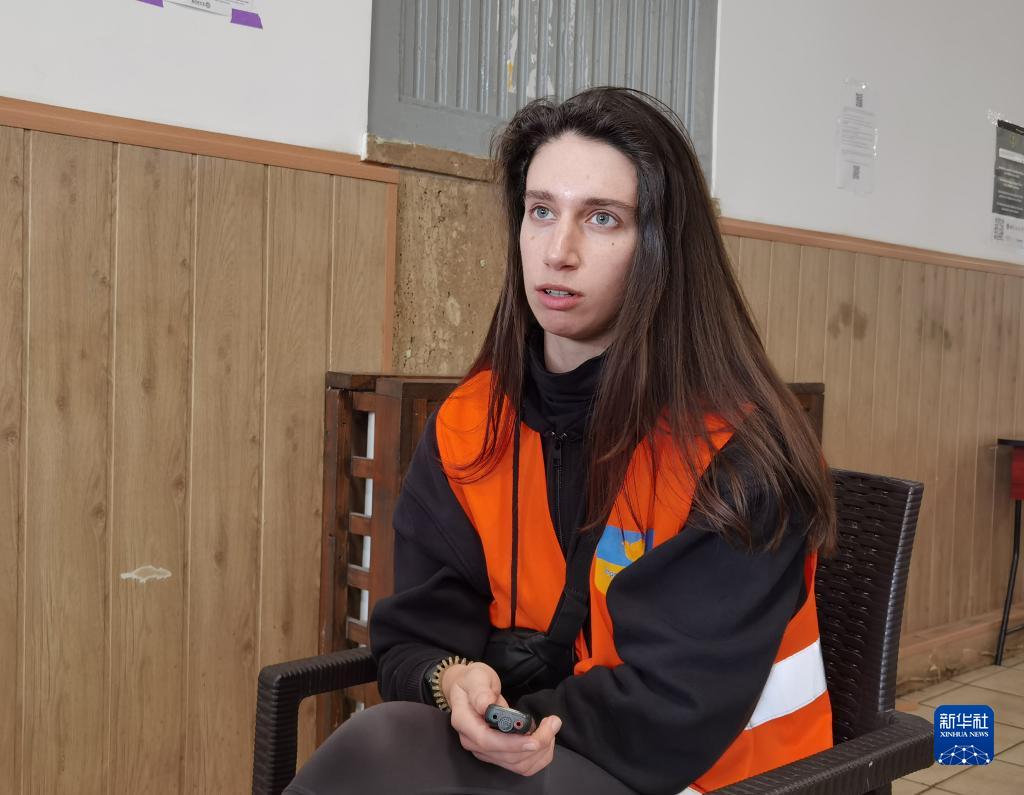 4月21日,在罗马尼亚首都布加勒斯特火车北站,在这里当志愿者的乌克兰姑娘奥列娜在车站2号休息室接受新华社记者采访。新华社记者 林惠芬 摄
