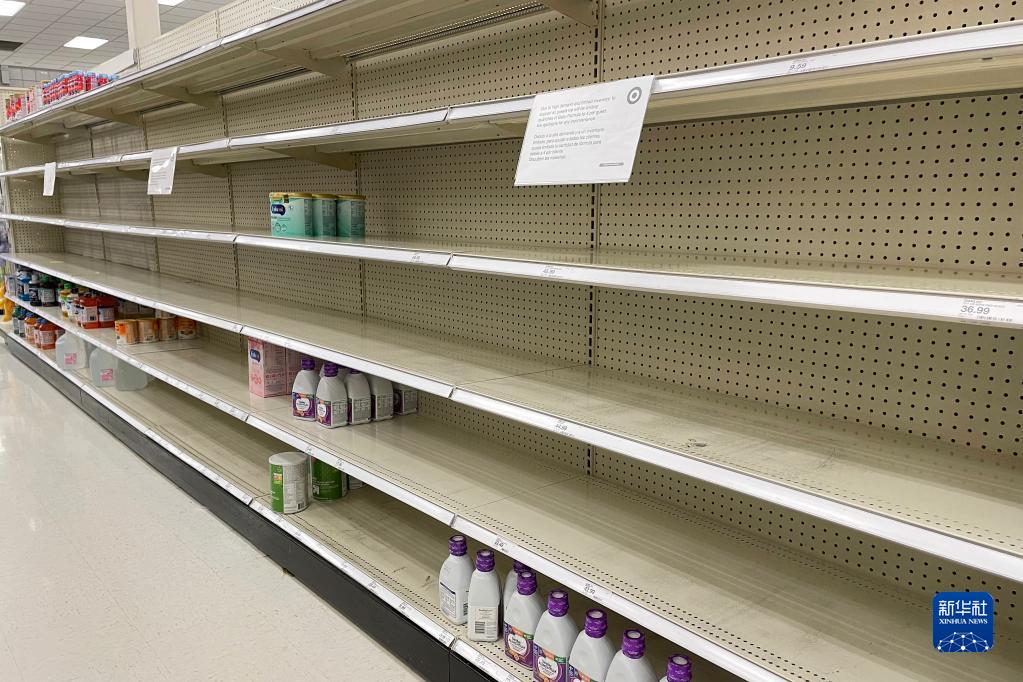 5月13日,在美国弗吉尼亚州,一家超市的婴幼儿配方奶粉货架出现大面积缺货。