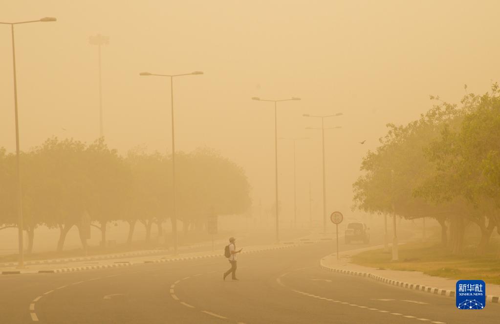 5月17日,在卡塔尔首都多哈,道路被沙尘笼罩。