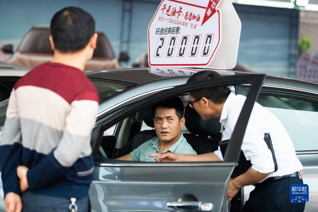 5月21日,销售人员(右一)向观展市民介绍汽车。