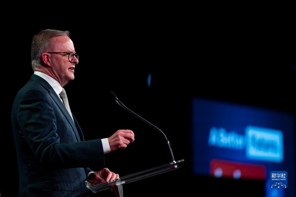 5月21日,在澳大利亚悉尼,工党党首阿尔巴内塞在竞选集会上讲话。