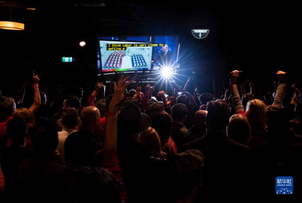 5月21日,工党支持者在澳大利亚悉尼工党竞选总部庆祝。