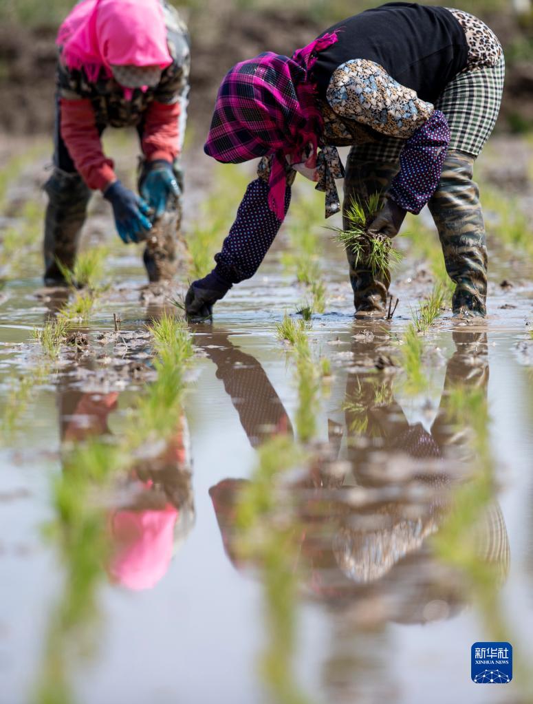 随着天气转暖,宁夏灵武市的水稻插秧工作全面有序进行,田间地头一片农忙景象。宁夏被誉为“塞上江南”,利用黄河水灌溉,农牧业发达。目前,宁夏灵武市水稻种植面积4.6万亩,通过精量播种、测土配方施肥、病虫害绿色防控及专业化统防统治融合、增施有机肥等绿色高质高效技术,形成以龙头企业带动优质稻生产基地的一二三产业融合发展模式,促进当地优质稻产业转型升级。