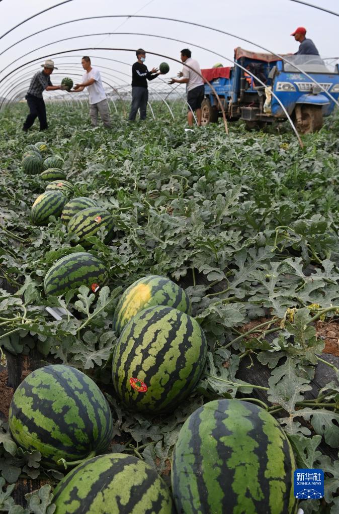 近日,陕西省渭南市蒲城县西甜瓜陆续成熟上市。地处关中平原东部的蒲城县全县西甜瓜种植面积17万亩,总产量达50万吨以上。当地政府克服疫情影响,拓宽销售渠道,确保群众稳定增收。