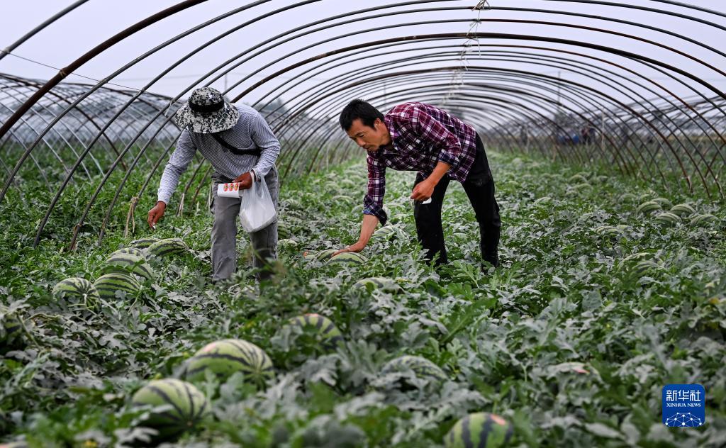 近日,陕西省渭南市蒲城县西甜瓜陆续成熟上市。地处关中平原东部的蒲城县全县西甜瓜种植面积17万亩,总产量达50万吨以上。当地政府克服疫情影响,拓宽销售渠道,确保群众稳定增收。