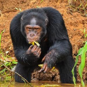 这是4月20日在喀麦隆滨海大区杜阿拉-埃代阿国家公园里拍摄的黑猩猩。