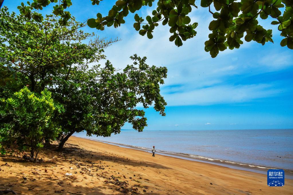 这是4月20日在喀麦隆滨海大区杜阿拉-埃代阿国家公园内拍摄的海滩。