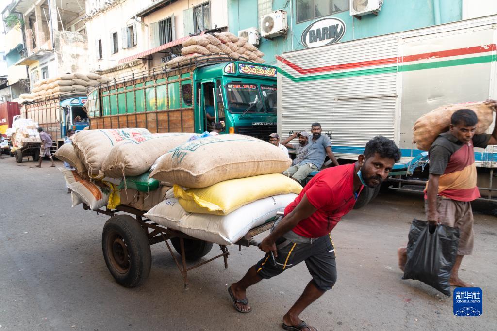 5月21日,工人在斯里兰卡科伦坡贝塔市场搬运货物。