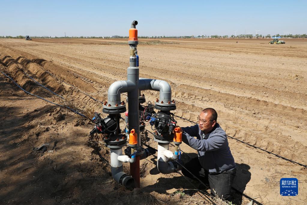 5月22日,工作人员在张家口市察北管理区马铃薯种植基地调试智能滴灌设备。