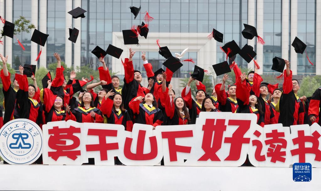 毕业季来临,在位于浙江省湖州市德清县康乾街道的浙江工业大学莫干山校区,即将毕业的2119名学子在校园内合影留念,记录在母校的最后时光。