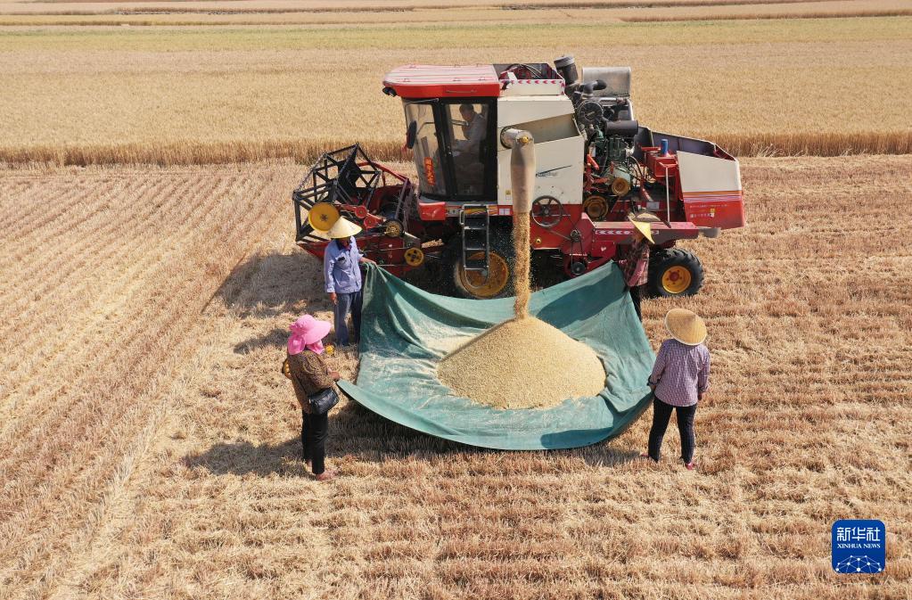 眼下,山东省枣庄市小麦陆续开镰,当地农民抓住天气晴好的有利时机,抢收晾晒小麦。